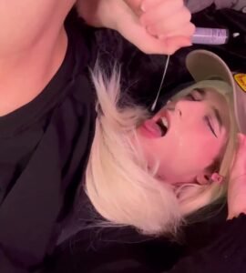 Cute Blonde Laps Up Her Own Spunk