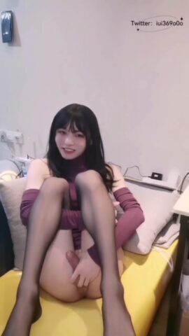 Cute Asian Femboy Cums On Pantyhose